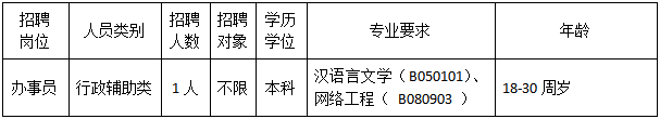 本次招聘面向社會公開招聘專項(xiàng)工作聘員1名,具體崗位如下: