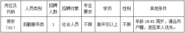 清遠(yuǎn)市清城區(qū)機(jī)關(guān)事務(wù)管理局因工作需要,根據(jù)《關(guān)于印發(fā)<清遠(yuǎn)市清城區(qū)機(jī)關(guān)事業(yè)單位專項(xiàng)工作聘員、合同制聘員以及后勤服務(wù)類人員管理辦法>的通知》(城區(qū)人社〔2022〕20號(hào))文件精神,面向社會(huì)公開招聘后勤服務(wù)類人員1名,現(xiàn)將有關(guān)事宜公告如下: