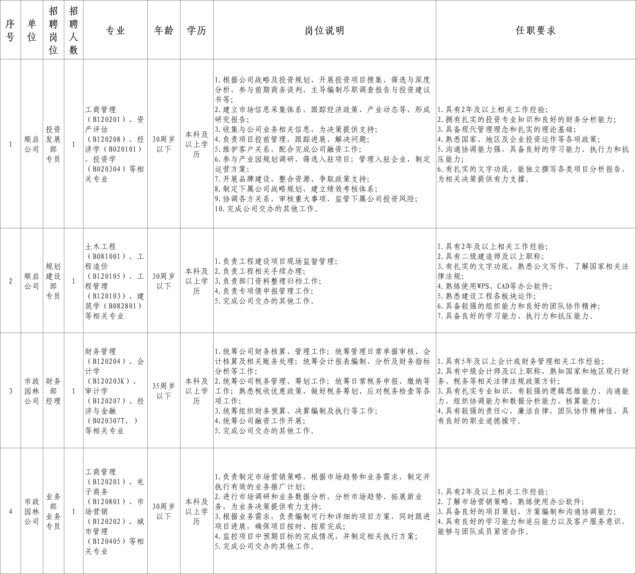 清遠(yuǎn)市清城區(qū)順啟投資有限公司招聘公告