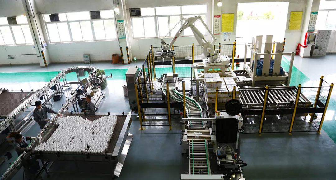 主傳動部電機輸出處有離合機構(gòu),確保設備不受到損傷。旋蓋機和灌裝機采用同一驅(qū)動組成,保證灌裝旋蓋速度協(xié)調(diào)一致。配備的旋蓋效果檢測器可以及時剔除無鋁箔蓋、歪蓋等旋蓋不合格品。 該設備運轉(zhuǎn)部位使用的伺服電機采用國外全自動高精度閉環(huán)式控制原理機構(gòu)傳動,扭力大。由PLC 執(zhí)行動作控制,觸摸屏采納模擬量調(diào)整,較一般廠家使用的同步帶傳動具有更高的貼標速度和高精度。 利用標簽緩沖技術(shù),實現(xiàn)了滾標貼超過170瓶/分鐘的速度,較高速旋轉(zhuǎn)貼標機價格下降40%,占地空間更小,調(diào)整更便捷。 江山股份的制劑包裝經(jīng)歷了從手工包裝(一條線20人,產(chǎn)能6000瓶/小時),到半自動化(一條線12人,產(chǎn)能10000瓶/小時),再到如今的全自動化(一條線4-6人,產(chǎn)能10000+瓶/小時)。整條生產(chǎn)現(xiàn)聯(lián)鎖控制,輸送控制系統(tǒng)運行通暢,提高了生產(chǎn)可控性,包裝生產(chǎn)品質(zhì)好、耗損低。整線智能生產(chǎn)線擁有檢查剔除系統(tǒng),及時自動地實行數(shù)據(jù)采集,實時對產(chǎn)線運行狀態(tài)進行監(jiān)控分析。