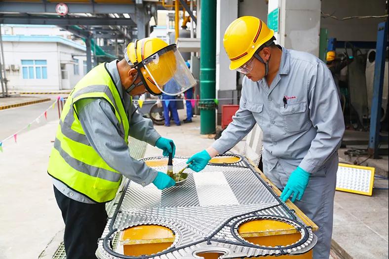 一遍遍查驗檢修作業(yè)人員是否已培訓到位,千叮嚀萬囑咐注意安全,杜絕違章行為。業(yè)精于勤疏于嬉,行成于思毀于隨,各事業(yè)部參檢員工齊心協(xié)力,嚴謹細致地檢驗設備、比對溶劑,精益求精把好檢修質(zhì)量關,嚴格按照驗收標準執(zhí)行。檢修現(xiàn)場,他們忙碌的身影,無處不在。為了一道焊縫,為了一根電線,為了一塊墊片,他們常常一蹲就是半天,一站就是一天。