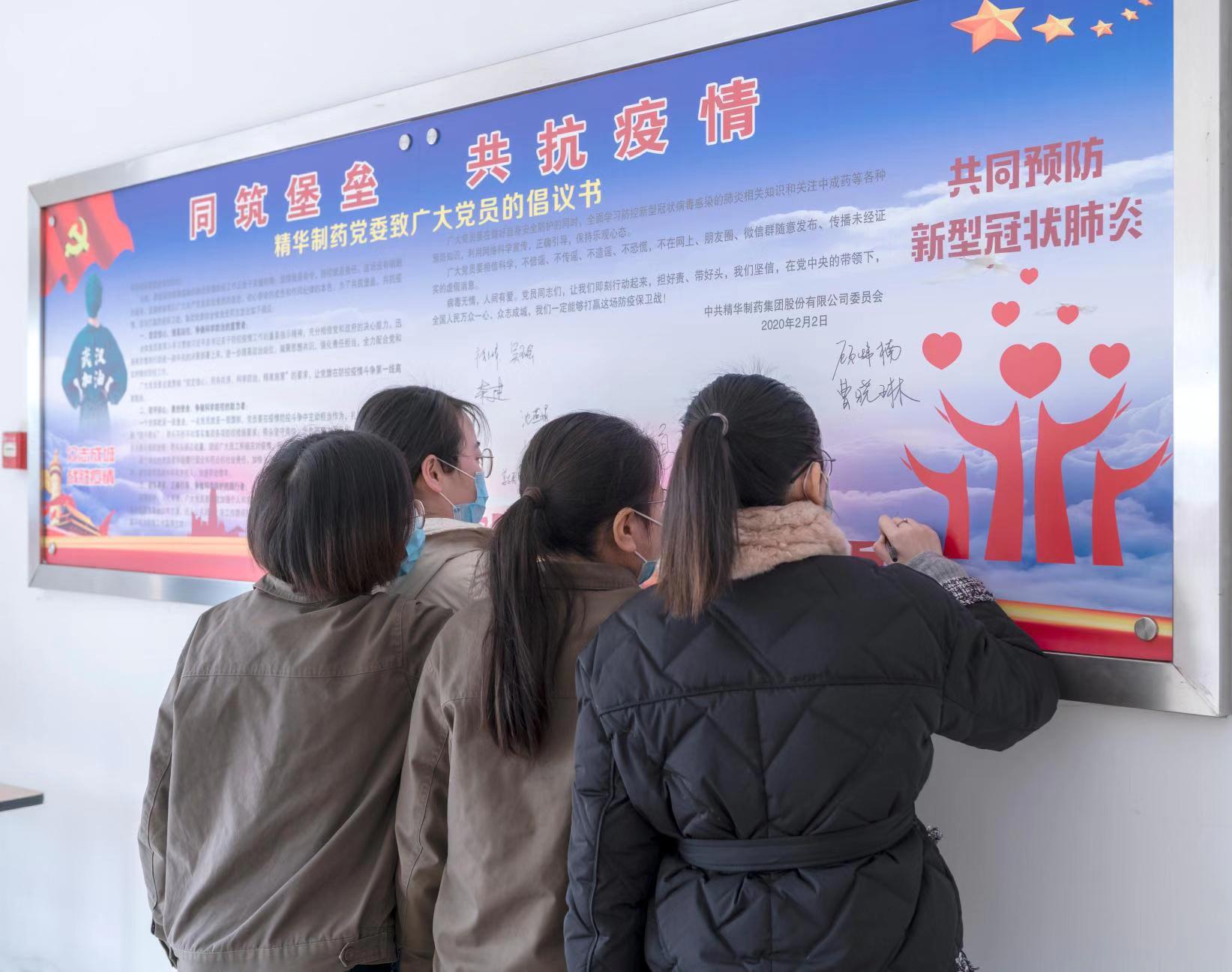 精華制藥黨委發(fā)出倡議書《同筑堡壘,共抗疫情》,倡議黨員同志擔(dān)好責(zé),帶好頭,萬(wàn)眾一心,眾志成城,以高度的思想覺悟和政治站位爭(zhēng)做科學(xué)防控疫情的宣貫者、助力者和踐行者。黨委領(lǐng)導(dǎo)高度重視疫情防控工作,職責(zé)分工明確,制度規(guī)范到位,行動(dòng)快速高效,一把手親自指揮、親自部署,各級(jí)黨員干部各級(jí)領(lǐng)導(dǎo)帶頭值班,沖在疫情防控第一線,組織黨員始終堅(jiān)守崗位,守護(hù)群眾生命安全和身體健康,以實(shí)際行動(dòng)踐行初心使命。除了做好自身防護(hù)工作和日常工作外,黨員同志們還紛紛要求主動(dòng)值班,堅(jiān)守崗位。黨員帶頭到生產(chǎn)車間一線參加正柴胡飲顆粒的包裝生產(chǎn),集團(tuán)公司科室全體人員也主動(dòng)加入到包裝正柴胡飲顆粒的工作中去。 為保障職工安全健康,精華制藥防控領(lǐng)導(dǎo)小組召開專題會(huì)議,制定防控工作方案,通過(guò)微信群、電話等方式部署各項(xiàng)疫情防控工作。組織各職能部門、分公司、子公司負(fù)責(zé)人對(duì)單位員工情況進(jìn)行摸排調(diào)查。凡是有疫情較重地居住史或旅行史的人員,凡是與疫情較重地外來(lái)人員有密切接觸史的人員,凡是與疑似、確診病人有接觸的人員,凡是出現(xiàn)發(fā)燒、干咳等異常情況的人員,立即上報(bào)并自我隔離觀察。堅(jiān)決杜絕疫情的傳入與傳播,努力踐行一個(gè)國(guó)有企業(yè)的社會(huì)責(zé)任。