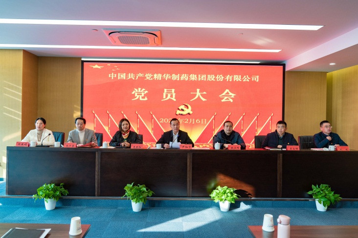 2021年2月6日下午,經(jīng)產(chǎn)控集團黨委批準,精華制藥集團成功召開了黨員大會暨黨委、紀委換屆選舉大會。 會上,集團董事長尹紅宇代表上一屆黨委作了題為《凝心聚力繪藍圖 砥礪奮進譜新章》的工作報告。報告回顧總結(jié)了近年來的經(jīng)營穩(wěn)發(fā)展、黨建有作為,在發(fā)展質(zhì)態(tài)、經(jīng)營管理、改革創(chuàng)新,產(chǎn)品研發(fā)、群團工作等方面所取得的顯著成績。他表示,面對2020外部政策環(huán)境激變以及新冠疫情帶來的影響,集團黨委上下凝心聚力、攜手共進,在逆流中乘風破浪勇奪佳績,這些都歸集于始終堅持“五個不動搖”的經(jīng)驗總結(jié)。他指出在今后的五年發(fā)展中,將深化黨建引領(lǐng)、踐行發(fā)展新任務(wù),從政治建設(shè)、思想建設(shè)、隊伍建設(shè)、組織建設(shè)、文化建設(shè)等五大方面進一步加強黨對企業(yè)的引領(lǐng)作用;進一步體現(xiàn)黨對企業(yè)治理的指導作用;進一步發(fā)揮黨組織的“把方向、管大局、保落實”核心作用。