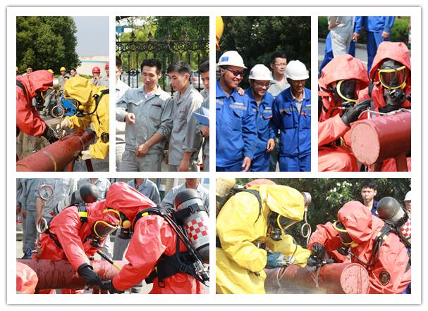 穿戴空呼器帶壓堵漏,需要檢驗參賽隊員規(guī)范穿戴空呼器、防化服的速度和熟練程度,同時還要考驗參賽隊員穿戴好空呼器、防化服進行高效、快速帶壓堵漏的應(yīng)急處置技能。