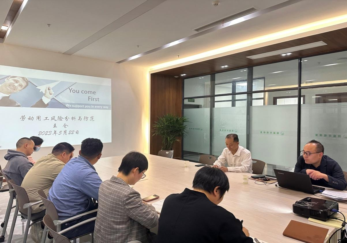 為深入學(xué)習(xí)貫徹習(xí)近平法治思想,加強民法典宣貫力度,以及增強員工的法律意識和履約能力,公司于2023年5月22日下午開展了民法典宣講活動,本次宣講主題為“勞務(wù)用工風(fēng)險分析與防范”,公司全體員工參加了此次活動。